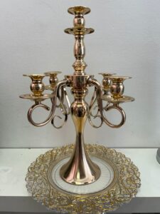 פמוט 5 קנים מתכת מוזהבת גובה 50 ס״מ