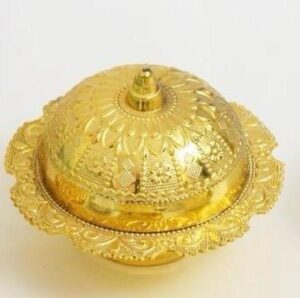 מגש מראה מתכת מוזהבת עם ידית